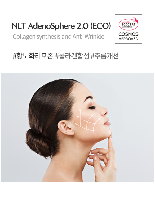 - NLT AdenoSphere 2.0 (ECO)은 기능성 고시 원료로써 2% 사용으로 주름개선 기능성 제품으로 생산이 가능합니다.