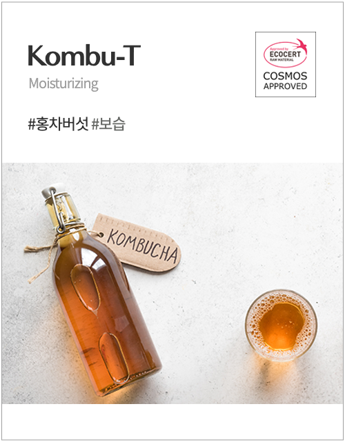 - Kombu-T는 홍차에 발효된 홍차버섯을 이용하여 만들어진 보습 전용 원료입니다.