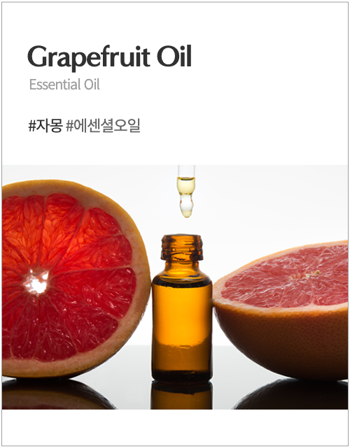 - 자몽 오일은 모든 시트러스 계열과 마찬가지로 기분 좋은 향을 제공하는 밝은 레몬 향의 모노테르펜(monoterpene)인 리모넨(Lemonen)이 다량 함유되어 있어 환경을 상쾌하게 하고 항균에 도움이 될 수 있습니다.