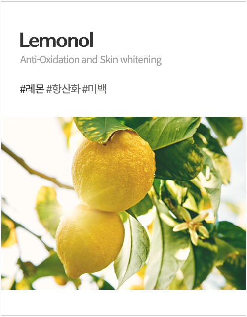 - 레몬에 포함된 플라보노이드 성분이 뛰어난 항산화 능력을 가지고 있어 피부를 노화시키는 유해산소인 활성산소를 차단하고 피부를 생기있게 합니다.