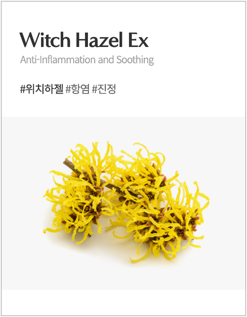 - Witch Hazel Ex는 피부를 진정시키고 자극을 줄이는 항염증 성분을 함유하고 있습니다.