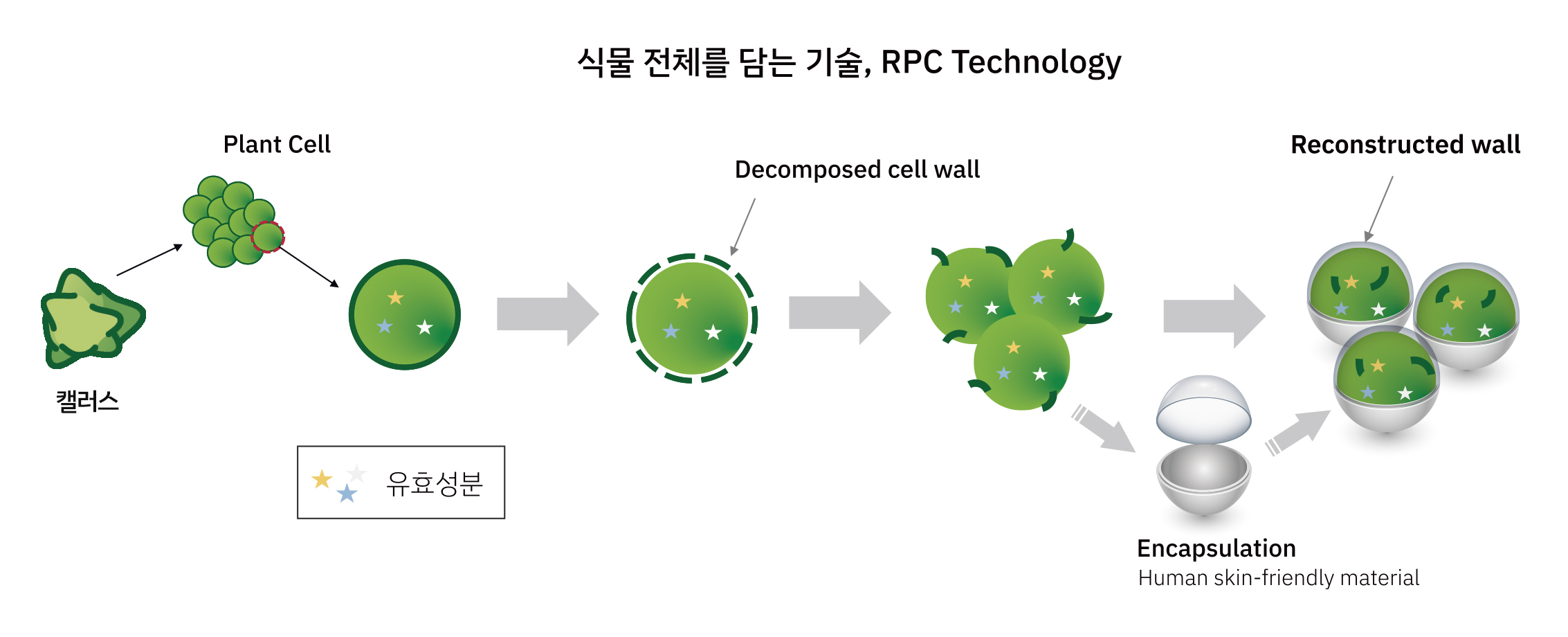 - VitexCell (L)은 바이텍스 세포를 배양한 캘러스를 RPC (Reconstructed plant cell) technology를 이용하여 식물세포의 영양분을 캡슐로 고스란히 담은 습식 캡슐 원료입니다.