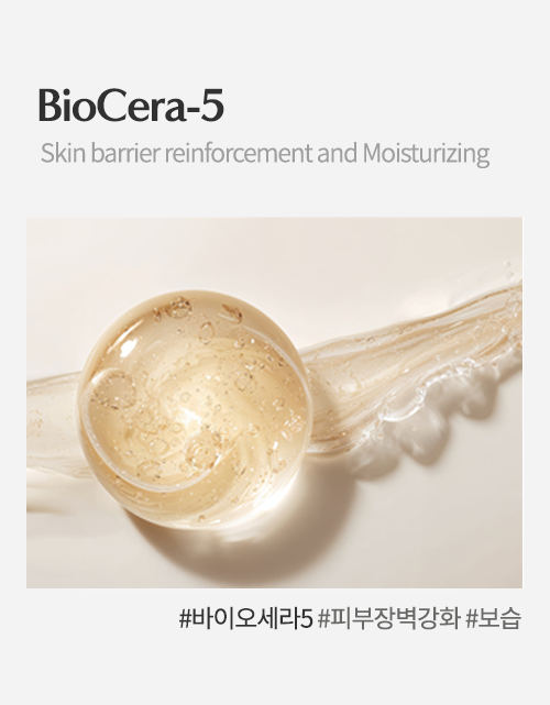 - BioCera-5를 사용함으로써 뛰어난 피부 장벽 강화 및 보습 그리고 우수한 가용화력 효과를 가질 수 있습니다.